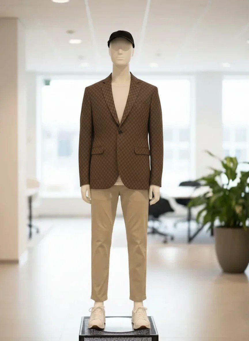 This men’s premium brown checkered casual blazer is designed for those who appreciate effortless style with everyday comfort. Crafted from high-quality textured fabric, it features a subtle checkered pattern that adds a refined yet modern touch. The slim-fit tailoring enhances your silhouette, while the single-breasted design with classic lapel keeps the look timeless and versatile. Lightweight and breathable, this blazer is perfect for long hours of wear without compromising comfort. Whether paired with chinos, jeans, or tailored trousers, it’s an ideal choice for casual outings, office wear, or smart-casual occasions.